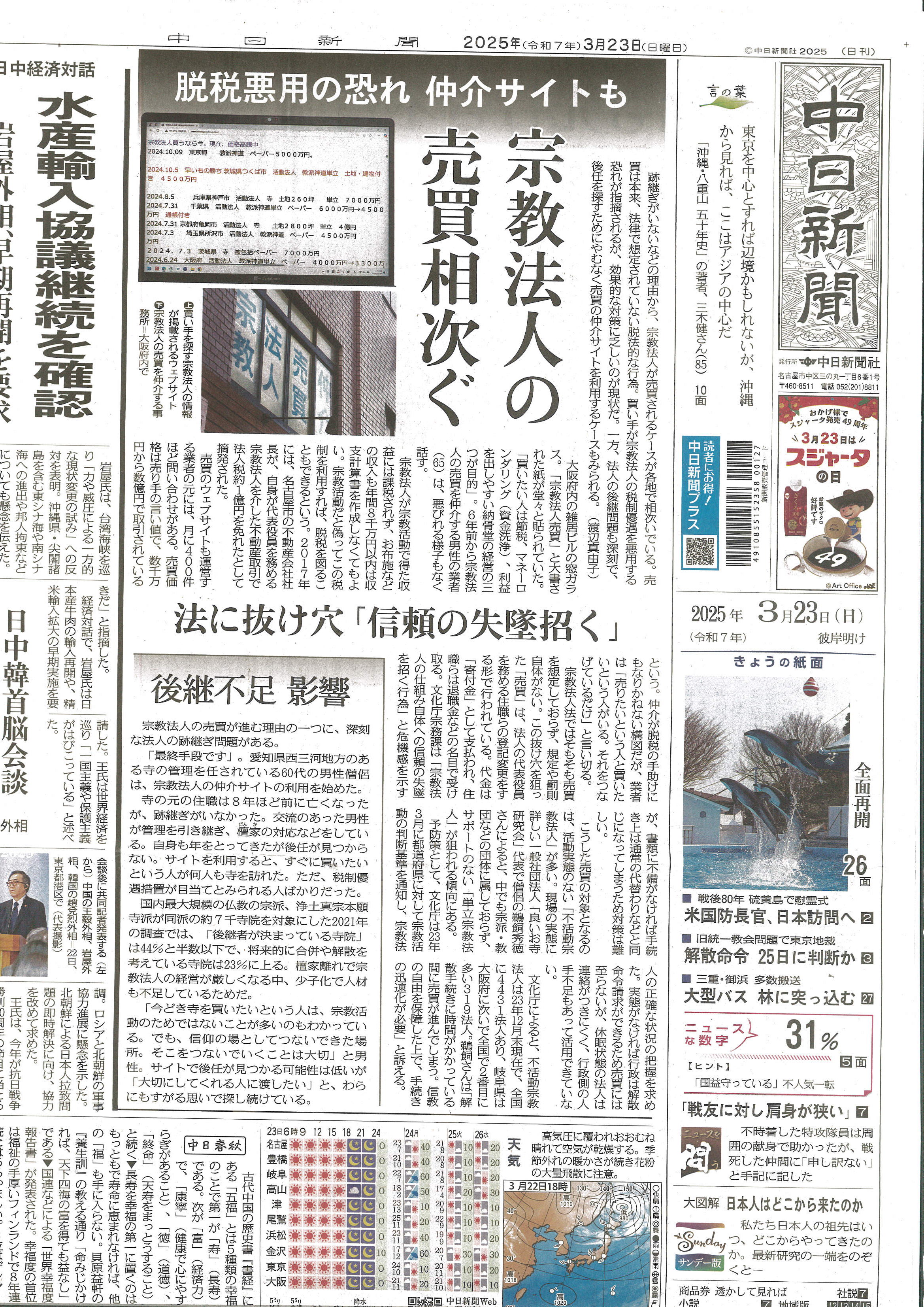 中日新聞記事
